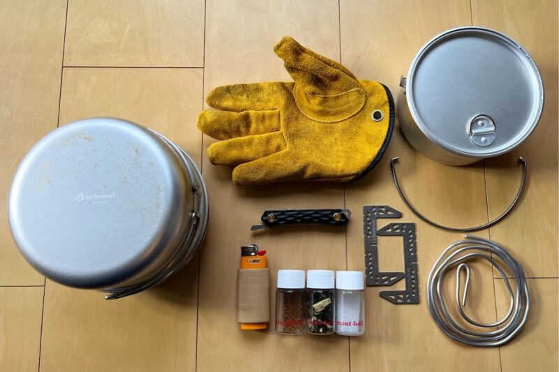 調理用クッカーを選ぶうえで外せない条件は、「アルミ素材・汁物と炒め物が作れる・炊飯用クッカー(Backcountry Almi Pot)が収納可能」の3つです。