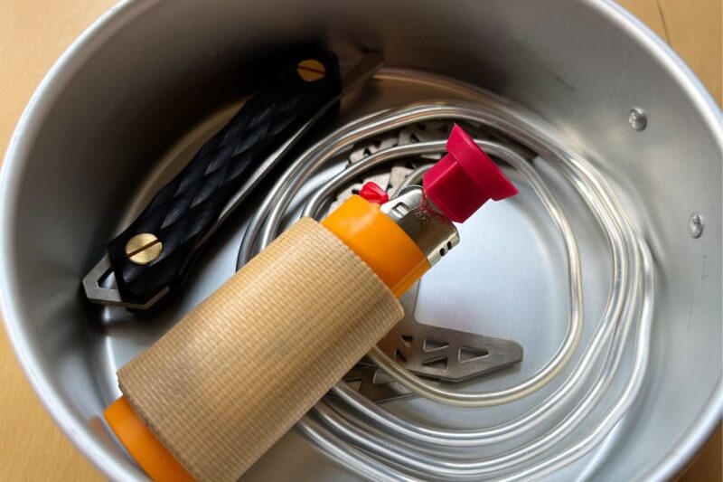 リッドの下にはライターなどの小物、リッドの上には別のクッカーを収納することが可能です。
