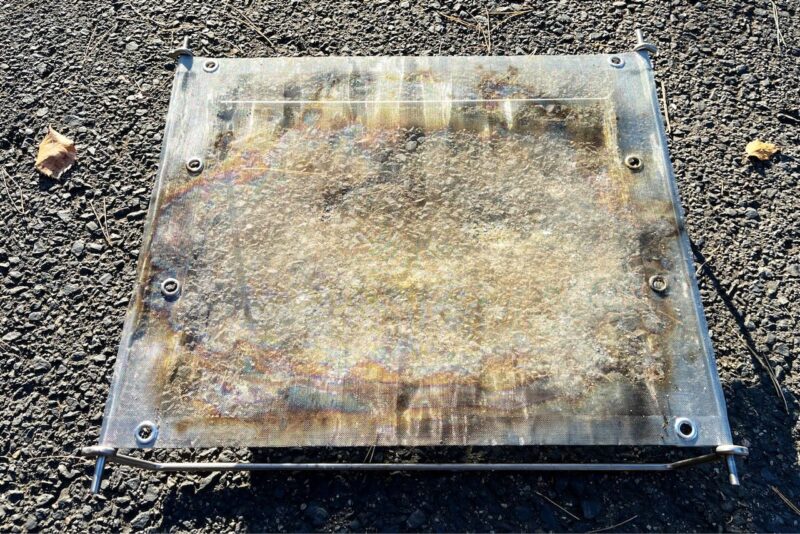 地面への熱ダメージ軽減のため、カーボンフェルト&遮熱シートを敷いています。