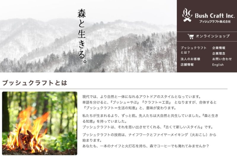 ブッシュクラフトは、日本初のブッシュクラフト用品を専門に扱う日本のメーカーです。