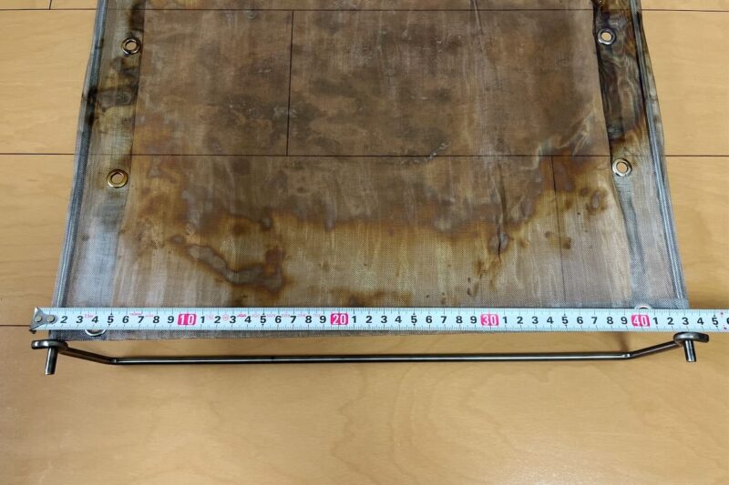 ステンレスメッシュを丸めてフレームと一緒に付属の袋に入れると、直径約7cm×長さ44cmとコンパクトになります。