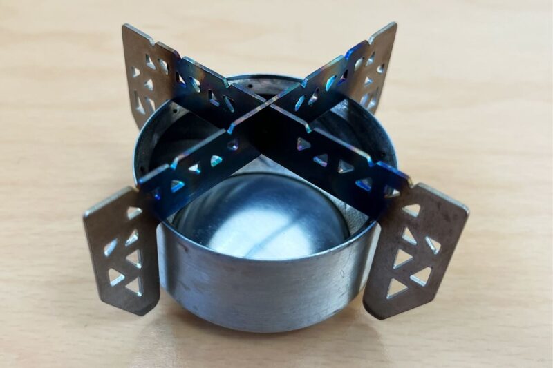 アルコール燃料はもちろん、固形燃料やジェル燃料も使用可能なチタン製の五徳を購入しました。