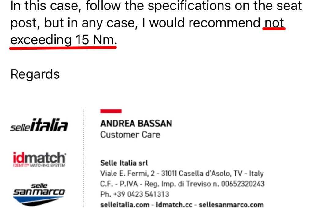 ※ サドル(やぐら)は、シートポストの規定を優先し、最大15Nmを超えないようにしてください。