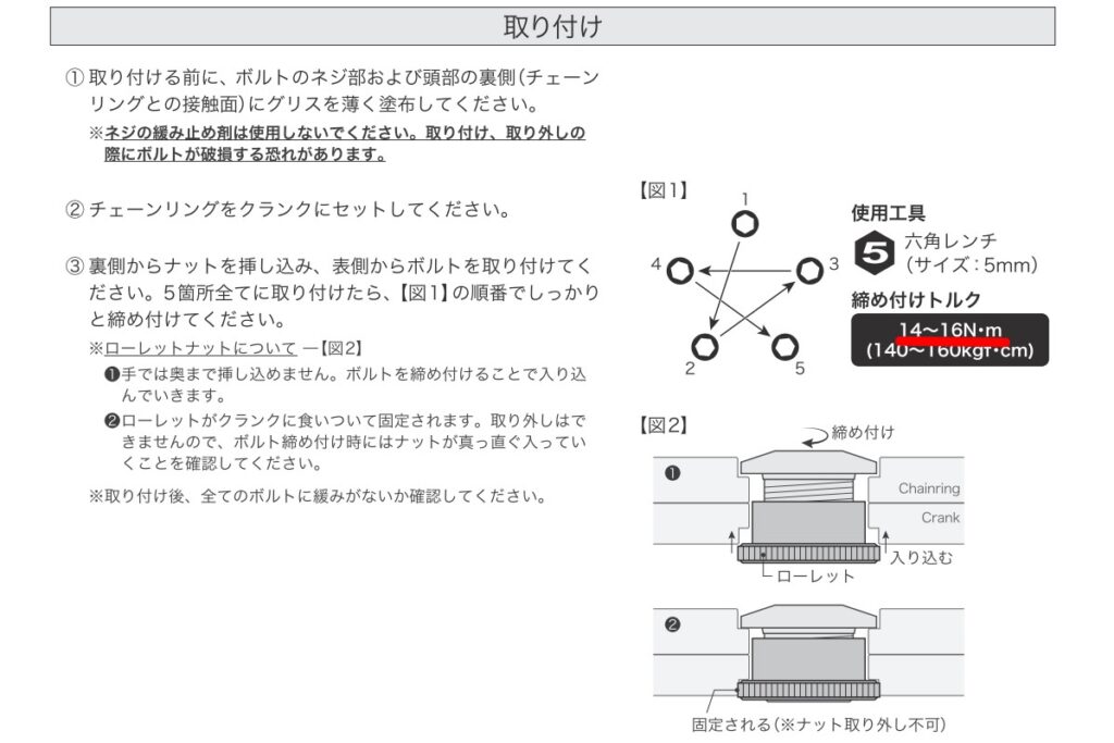 | チェーンリングボルト | 14 - 16 | 正 | |