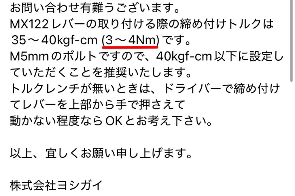 ※ 製品により指定トルクは異なるため、必ずご自身のパーツの刻印や説明書を優先してください。