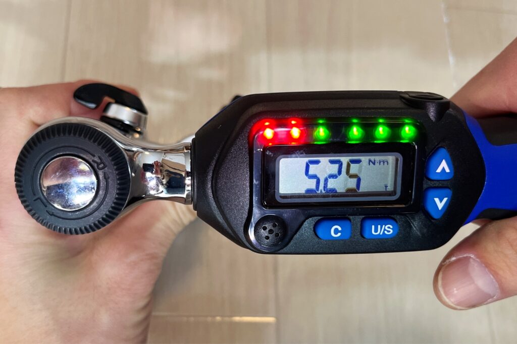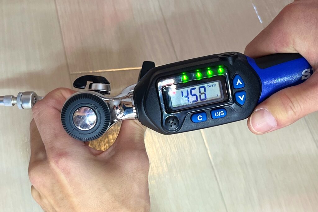 通常のレンチで規定トルクの手前まで締め、最後の数値チェックとしてのみ使いましょう。