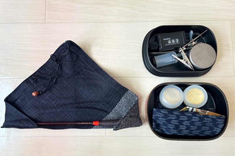 全て収納する完全にお弁当箱にしか見えず、とても釣りに行くようには見えません。