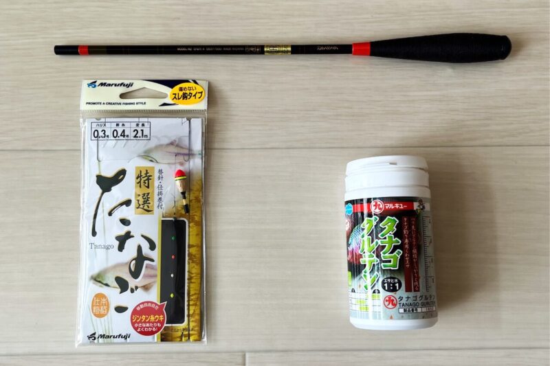最低限、「竿・仕掛け(糸・うき・針)・えさ」があればタナゴ釣りは可能です。